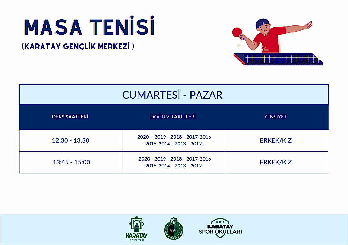 İnternet üzerinden ön kayıt oluşturan velilerimiz, kendilerine gönderilecek bilgilendirme mesajının ardından Karatay Tenis Kortu’na gelerek kesin kayıt işlemlerini gerçekleştireceklerdir. Kesin kayıt tarihi SMS yoluyla ayrıca bildirilecektir.